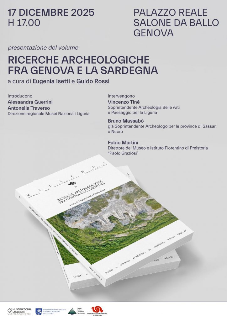 Mercoledì 17 dicembre alle ore 17 a Palazzo Reale a Genova avrà luogo la Presentazione del volume Ricerche archeologiche fra Genova e la Sardegna, a cura di Eugenia Isetti e Guido Rossi.